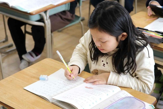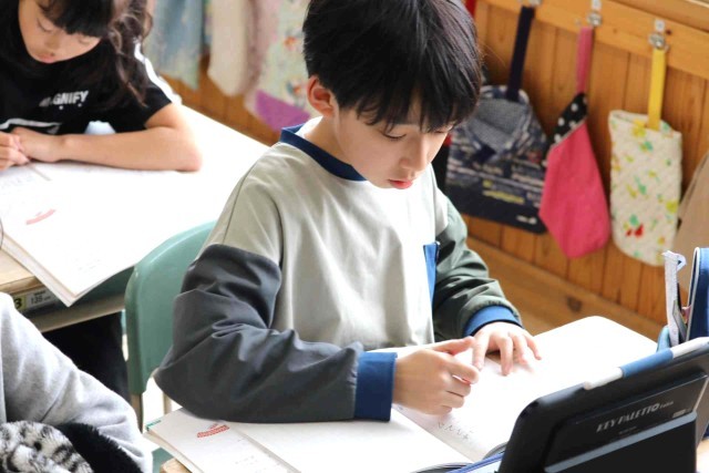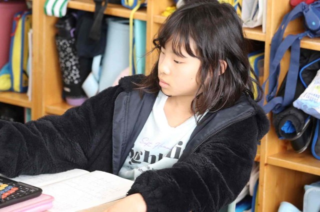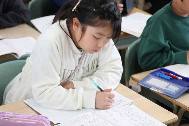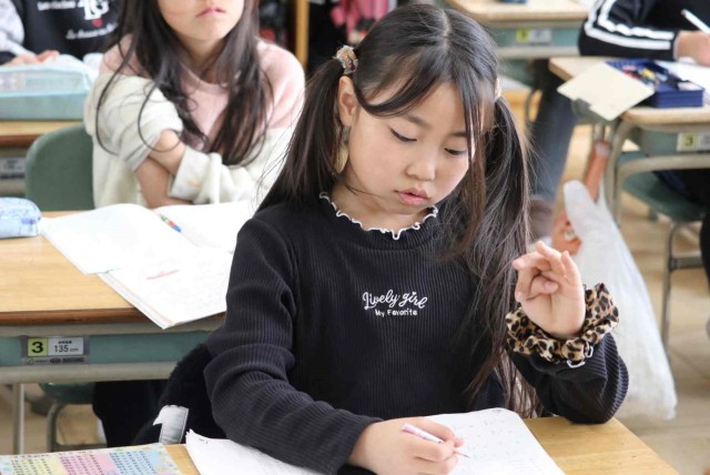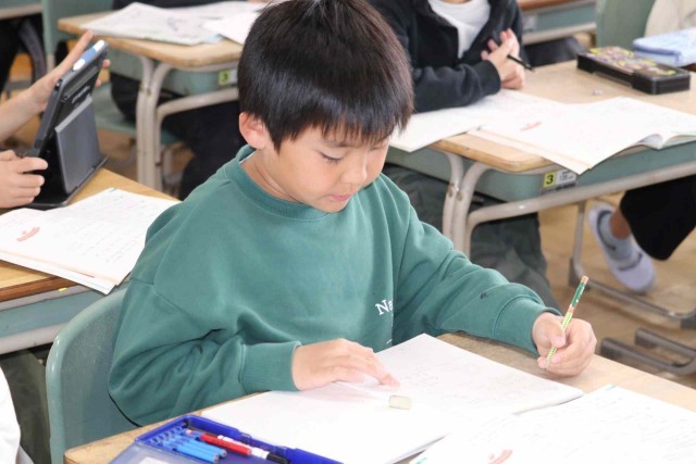 算数の授業でまとめの問題を解きました。計算や文章題など、自分のペースで問題と向き合っていました。教科書や算数の友が最後まで終わる子もいました。