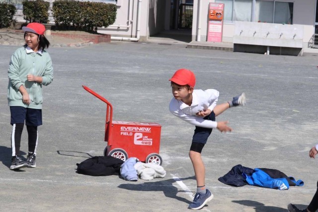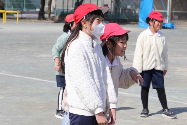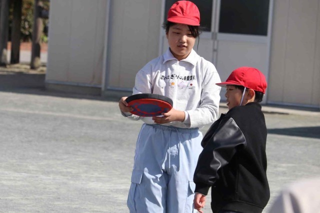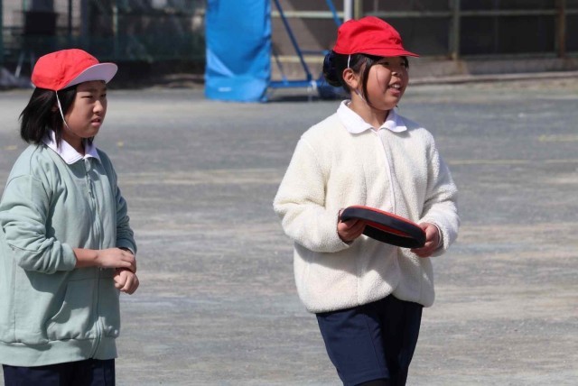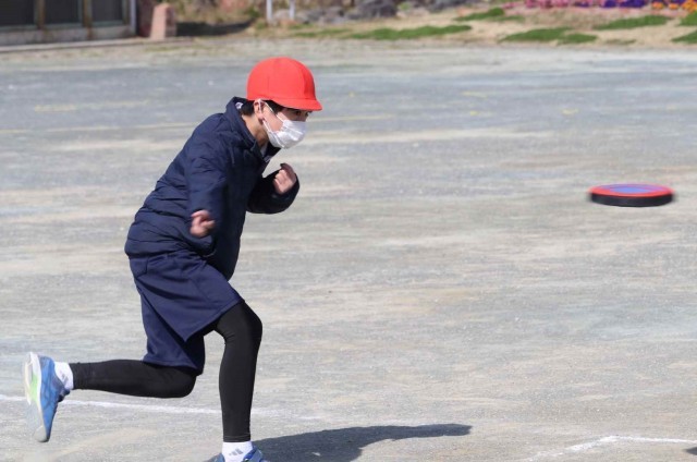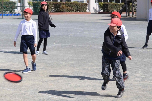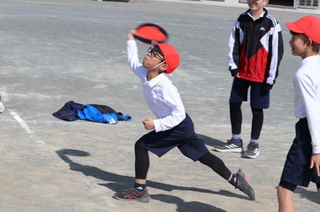 体育の授業でフリスビーを使ったドッジボールをしました。ボールと違って狙ったところに投げるのが難しいですが、どこに飛ぶのが分からないところが面白いようです。学級全員でとても盛り上がっていました。