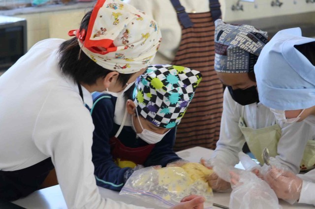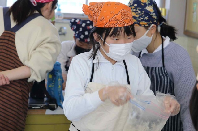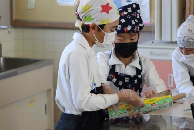 家庭科の授業でお菓子作りをしました。ホットケーキミックスを使ってクッキーを焼きました。みんなで楽しそうに生地作りから作業を始めていました。どんな焼き加減になったのでしょうか。