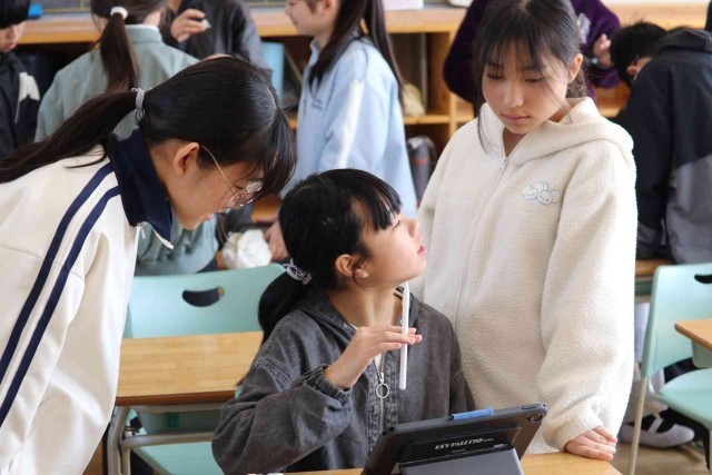 中学生になる前に、適切なSNSの使い方や不審な情報を判別することなどを学習しました。実際にタブレットで体験しながら、だまされないように注意することができました。
