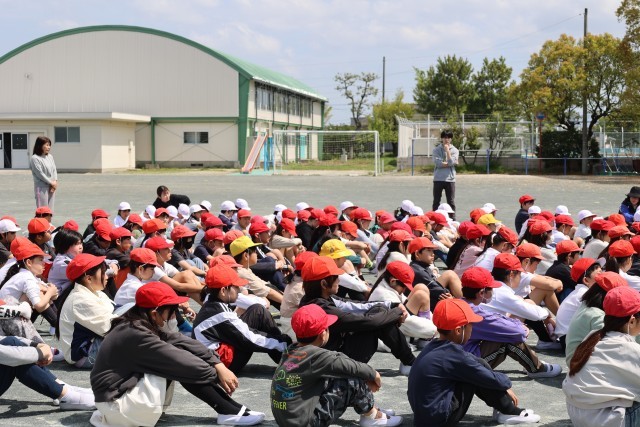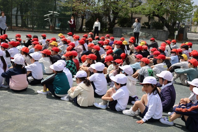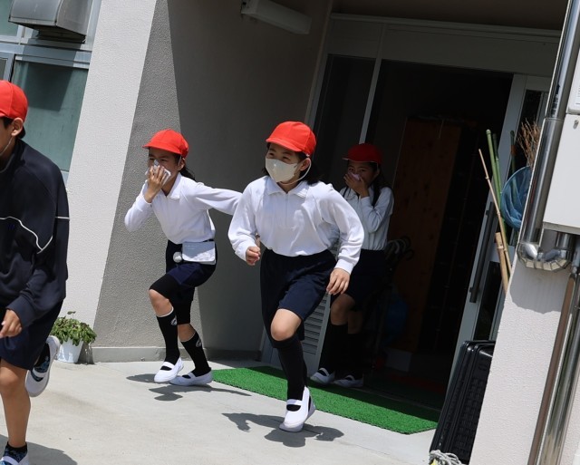 校長先生からは、火事で一番怖いのは「煙を吸い込むこと」なので、今日の避難の方法を覚えておきましょう。とお話がありました。