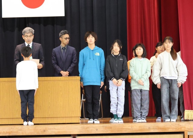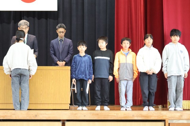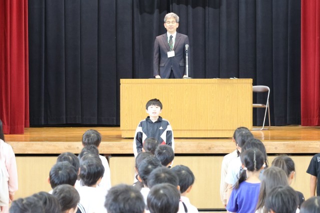 児童会役員、委員長、たてわり級長、学級役員に校長先生から任命状が渡されました。前期児童会長の決意表明では、「①みんなが自分らしく過ごせる学校にしていきたい。②助け合える団結力のある学校にしていきたい。」と話され、嬉しくなると同時に期待が膨らみました。