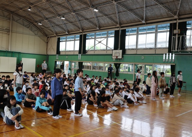 初めての全校朝礼です。新役員さんの「元気にあいさつをしましょう」の声掛けに応え、大きな声であいさつができました。