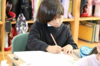 理科の授業で空気と水について勉強しています。実際にビニール袋に空気を閉じ込めて、観察や実験を行っていました。