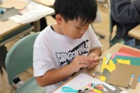 3年生が調べたことを分かりやすく説明する学習をしています。今日は、アメリカや韓国、エジプトなど、世界の国々の文化を模造紙にまとめて伝える練習をしました。