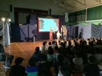 担任の先生が描く赤鬼を見て、子どもたちが「校長先生、写真に撮ってあげてください。」写真に撮ると、「先生、よかったね。ホームページに載るかもよ。」と話す、かわいい子どもたちです。