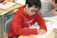 音楽の授業で日本の伝統音楽を鑑賞しました。今日は「越天楽今様」という曲を聞いて、どんなときに使われている曲か確認していました。合唱では「ふるさと」を上のパートと下のパートを合わせて歌っていました。