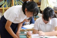 書写の授業で毛筆の学習をしました。今日の題字は「土地」でした。特に「地」のバラン...