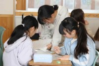 国語の授業で意見文を書く学習をしました。書き終わった文章をグループの仲間に読んでもらいました。誰の意見が一番説得力があるかを選んでいました。