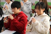 音楽の授業でリコーダーの学習をしました。課題曲の「メヌエット」を何度も繰り返し練習していました。個人で練習した後、クラス全体で合奏するなどしていました。