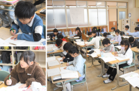 早いもので、2月も今日を入れてあと2日。毛筆の授業も今日が最後となりました。小筆を使って名言を書いています。みんな集中しています。