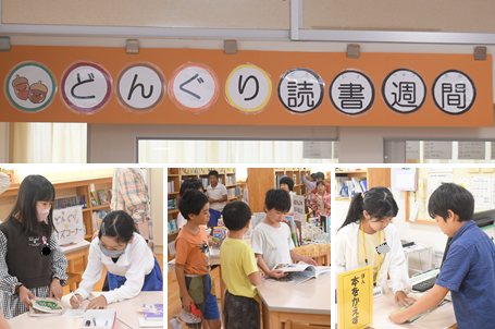 今日から「どんぐり読書週間」がスタートしました。サイコロをふってシールがもらえたり、読書クイズに答えてしおりがもらえたりします。8日(水)まで実施しています。図書委員の皆さん、ご苦労様です。