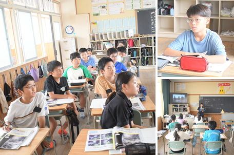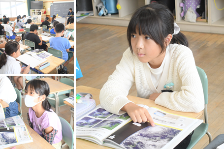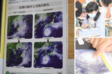 「台風と天気の変化」の学習です。春の雲の動きと、台風が発生した時の雲の動きの違いについて気づいたことを発表しました。