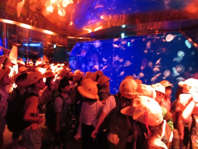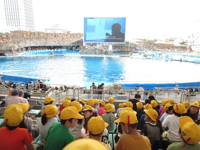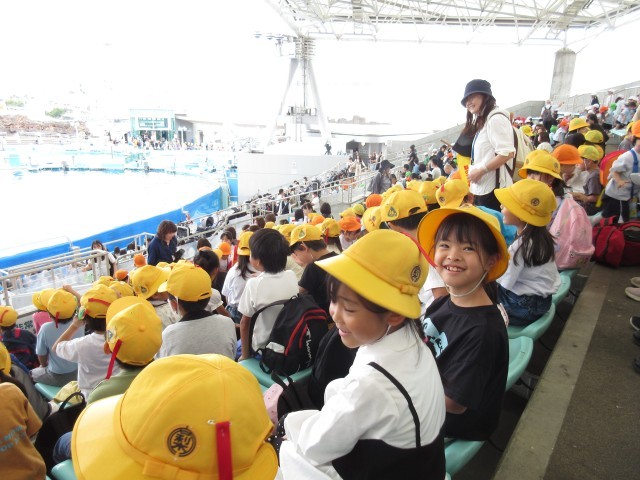 わくわく気分いっぱいのバスに乗って、水族館へ出かけました。