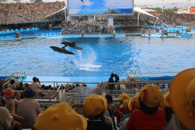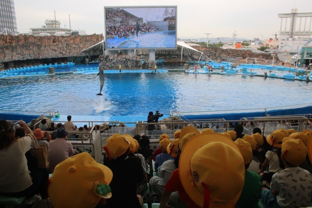 イルカショーでは、高いジャンプや上手な芸に大きな拍手を送り、笑顔があふれました。