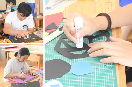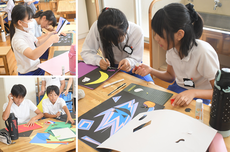 「紙が奏でる形と色のハーモニー」色画用紙を切って重ねて形を表現します。どんな作品ができるかな?