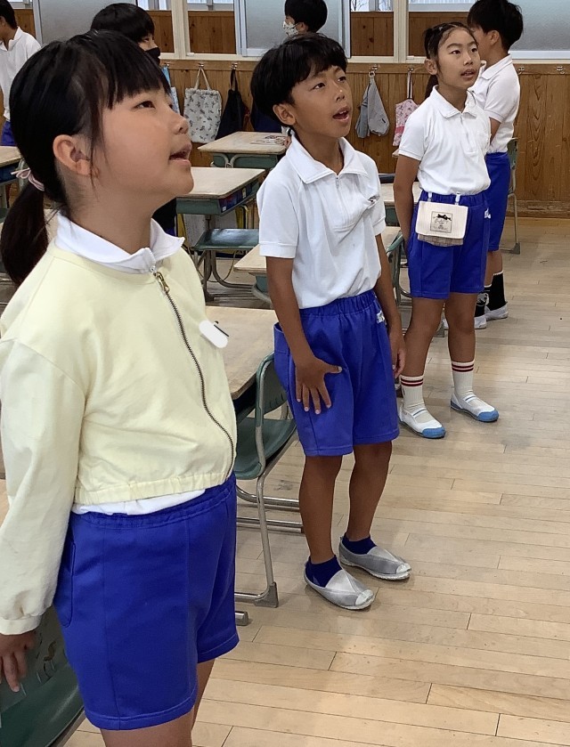 8時10分になると、朝の会が始まりました。 今月の歌「エール」を、気持ちよさそうに歌っている子たちに出会いました。