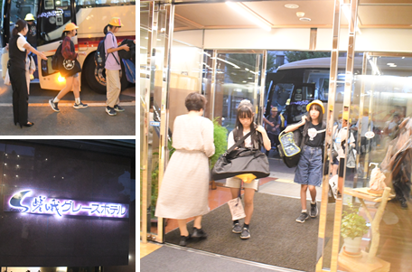 ホテルに到着しました。外はかなり暗くなってきています。全員でホテルの方々にご挨拶をして、荷物を部屋へ運びました。