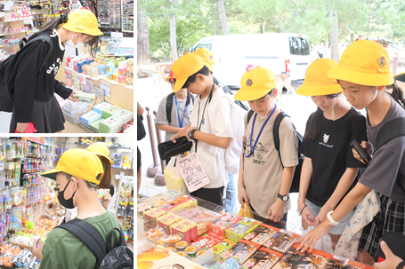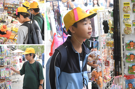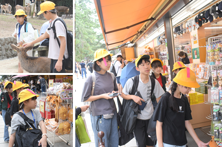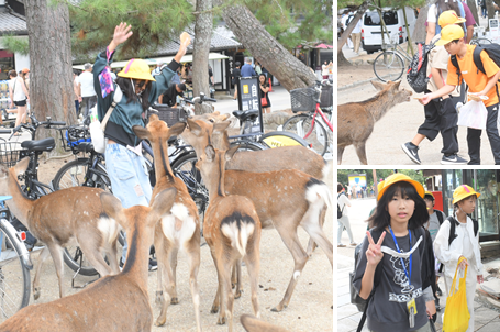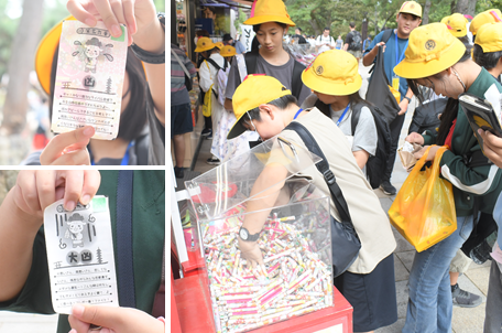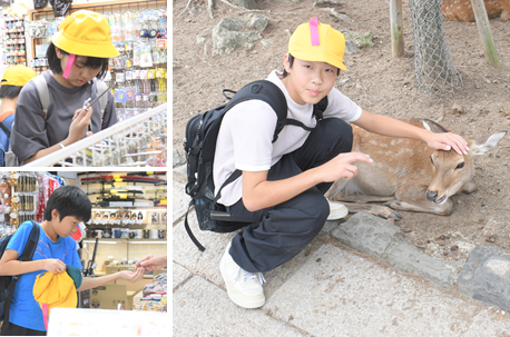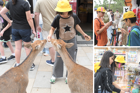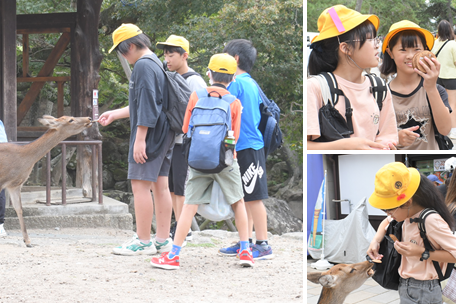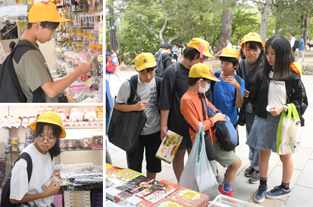 大仏殿の見学を終え、奈良公園の班別自由行動が始まりました。お土産を買ったり、鹿にせんべいをあげたり、班の計画で行動しています。おみくじがブームになっていました。