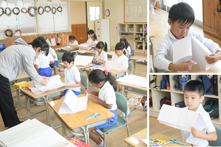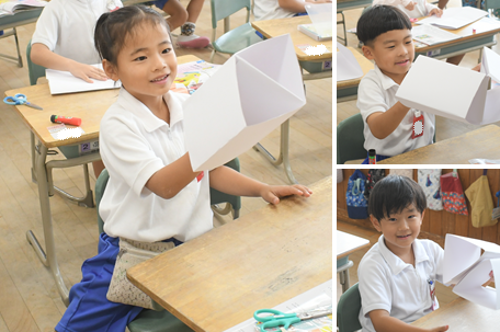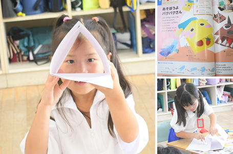 「あそぼうよ パクパクさん」画用紙にハサミで切り込みを入れて、三角形に折り曲げます。口をパクパクさせるような動きをします。どんな作品ができるのかな?