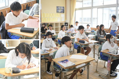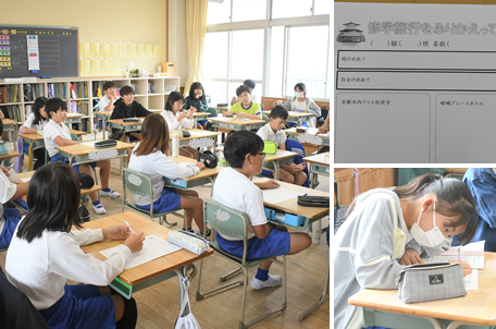 修学旅行のまとめをしています。班行動や学級別行動、ホテルでの出来事など、思い出に残ったことを書いています。