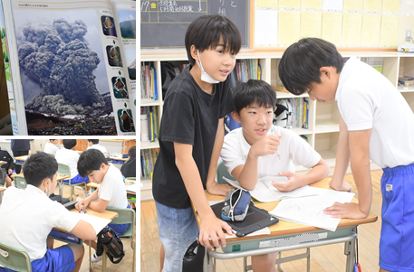 火山の学習です。火山活動がその土地に及ぼす影響について勉強しています。