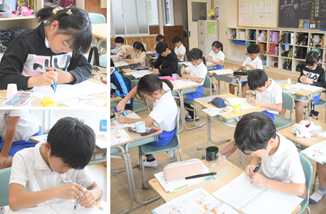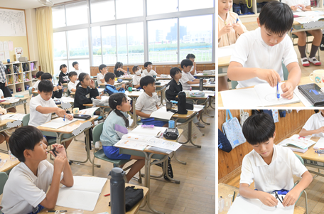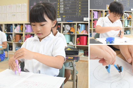「円と球」の学習です。今日、初めてコンパスを使いました。コンパスを使って円を描く練習をしました。