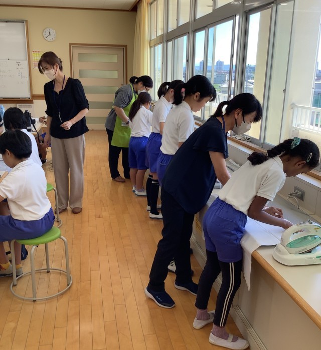 昨日は5名、本日は4名の家庭科補助ボランティアの方が来校し、アイロンの準備や、子どもたちの様々な困りごとへの対応などの学習補助をしてくださいました。