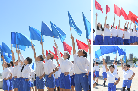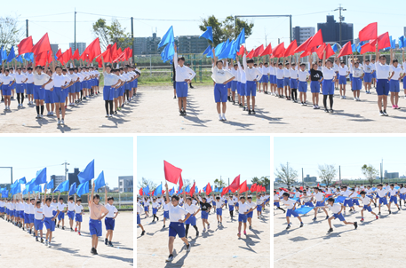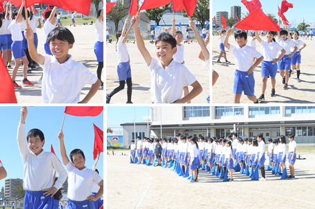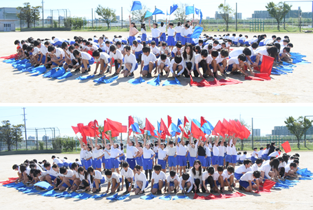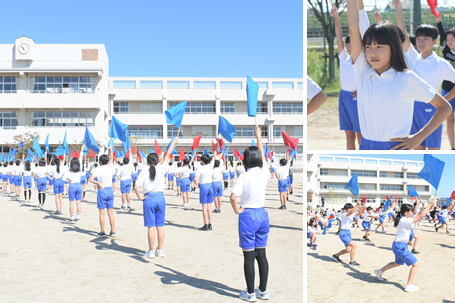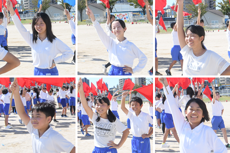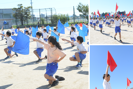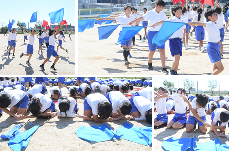 運動会まであと1週間です。5・6年生のフラッグ演技もかなり出来上がってきました。頑張って練習をしている様子です。