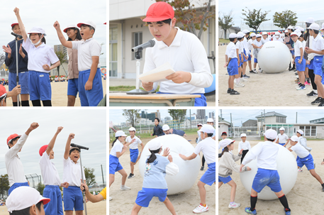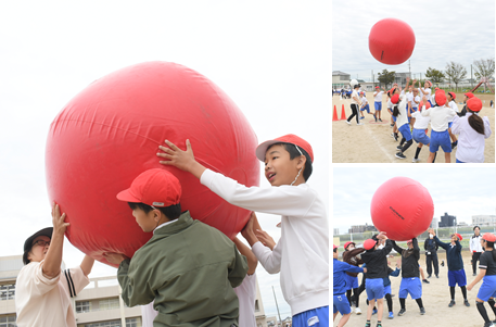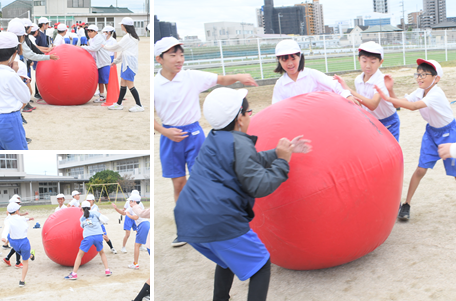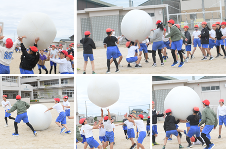4~6年生が大玉送りの練習をしました。1、2回戦は大玉を転がしますが、3、4回戦は大玉を持ち上げて運びます。落とさないようにみんなで協力しましょう!