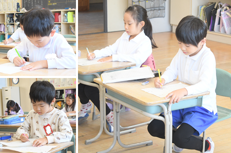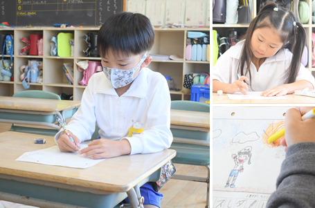 土曜日に行われた運動会の絵日記をかいています。何が一番思い出に残ったのかな?
