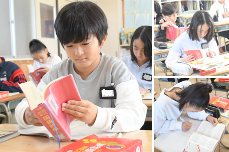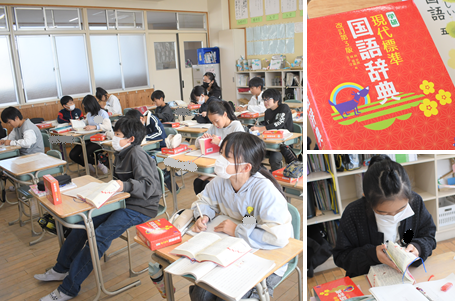 説明文「和の文化を受けつぐ」に出てくる難しい語句の意味を国語辞典を使って調べています。