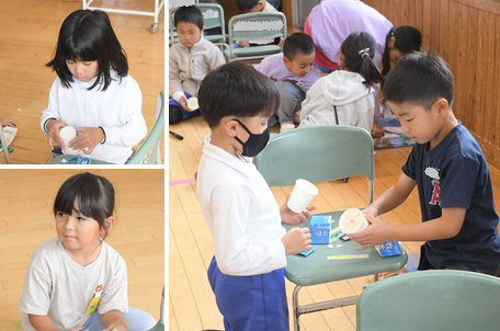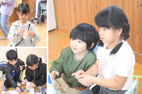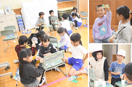 「おもちゃまつり」を開いています。2年生が生活科の時間で作ったおもちゃを使って1年生と一緒に遊びました。