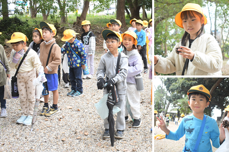 「秋みつけ」で高津社と養下公園へ出かけました。少し天気が心配でしたが、雨は降らず、どんぐりや松ぼっくりなど、たくさんの秋を見つけることができました。