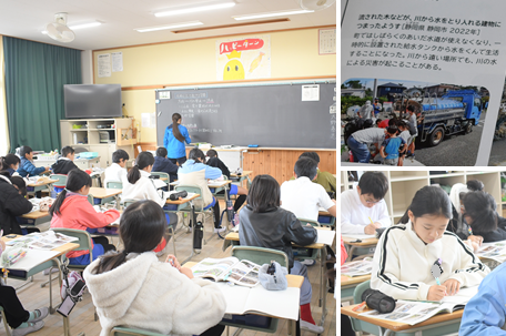 「私たちのくらしと災害」大雨が降ると、どのような災害が発生するのか考えています。