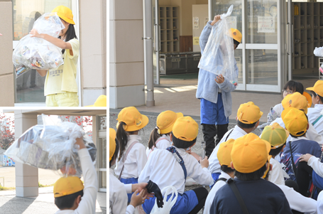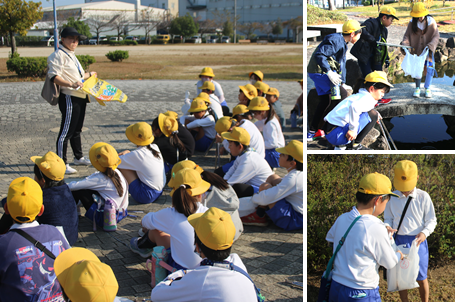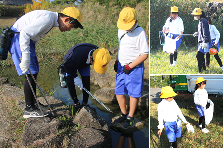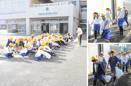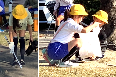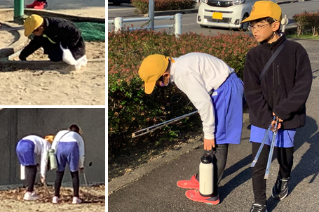 4年生は総合の時間に「環境」について学習をすすめています。今日はみんなで篠目公園へ出かけ、ごみ拾いをしました。公園内や道路のどんな所にどんなごみが落ちているのか、確認しながら清掃活動に取り組みました。