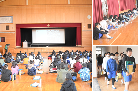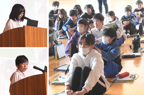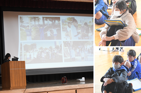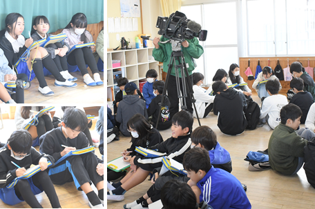 6年生は「地域との交流」をテーマに総合学習をすすめています。今までも、夏休みのラジオ体操に参加したり、地域のごみ拾いに参加したり、町内会長さんをお招きし、いろいろなお話を聞いたりしてきました。今日は、同じ地域をテーマとして総合学習を進めている二本木小学校の6年生を招待し、総合の交流会を行いました。梨の里小学校はプレゼンを用いて、体育館で発表し、二本木小学校には4つの教室に分かれて発表をしてもらいました。休憩時間には、教室で一緒にカードゲームをするなど、仲良く遊んでいる姿が印象的でした。中日新聞社やキャッチネットワークの取材もありましたので、近々報道されるかと思います。
