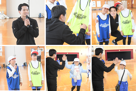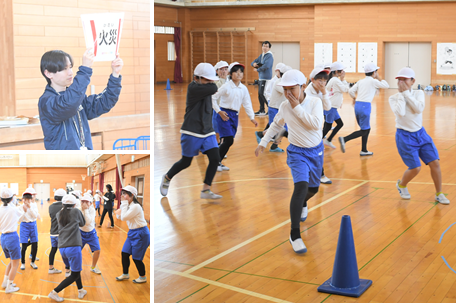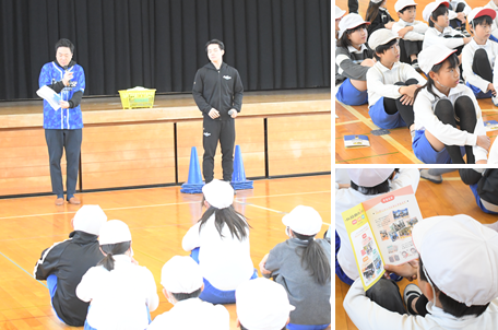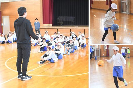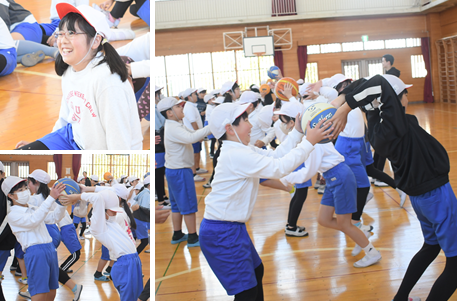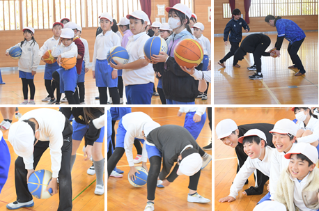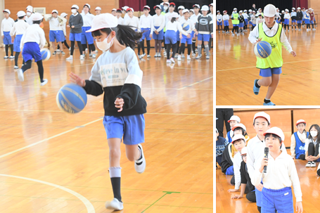 4年生は総合の時間に「防災」について学習をすすめています。今日は、プロバスケットボールチーム「シーホース三河」の選手をお招きし、防災学習に取り組みました。素早く正しい行動をとる「ファーストアクション」、声をかけあいながら、けが人を安全な場所へ誘導する「防災ボールリレー」、チームみんなでボールをつないで防災クイズに答える「防災クイズドリブルリレー」と、バスケットボールをしながら楽しく防災について学ぶことができました。プロの選手を間近で見て、触れて、子どもたちにとって、とても有意義な時間になりました。シーホース三河の皆様、運営に関わってくださいました安城市危機管理課の皆様、ありがとうございました。