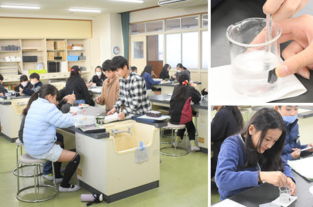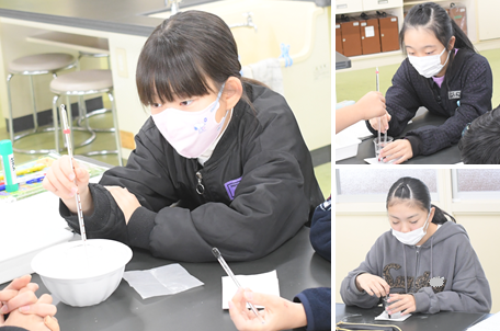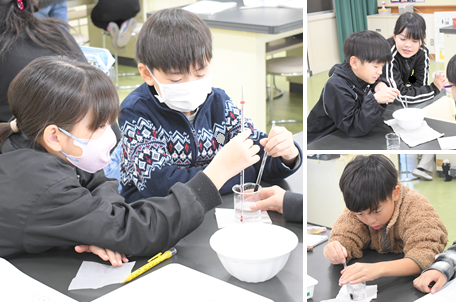 「もののとけ方」の学習です。今日は水の温度を変えて、食塩の溶ける量の違いを調べました。水の温度を40℃と60℃にして、食塩がどれだけ溶けるのか実験しています。