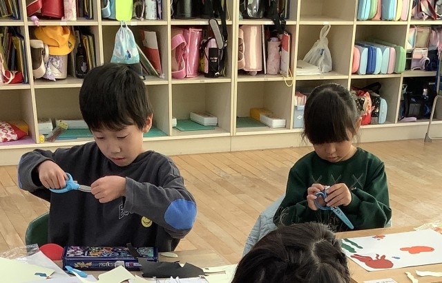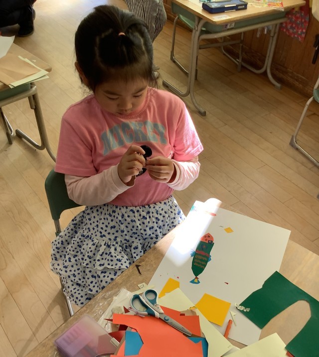 小さなパーツを作っては貼り、作っては貼りと指先を使って細かな作業を繰り返していました。