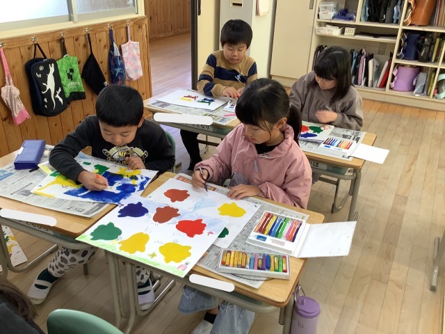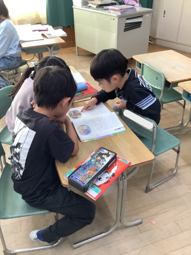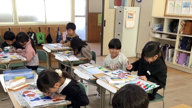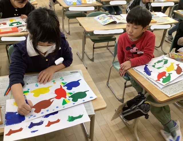 ある学級は図工を、もう一つの学級は国語を行っていました。