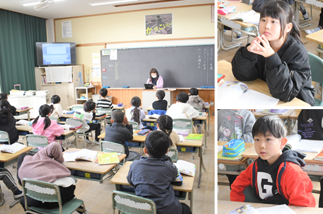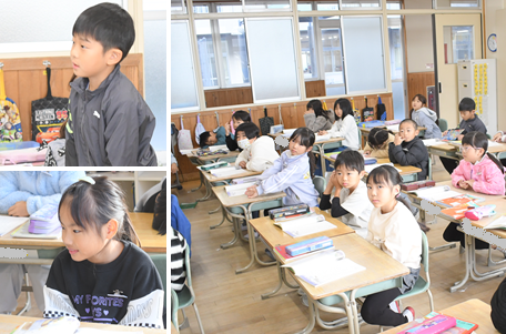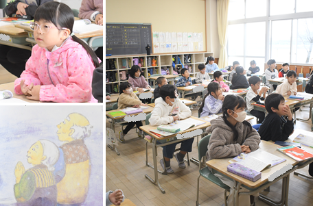 「かさこじぞう」の第5場面です。今ではあまり聞かれない「かます」や「ごんぼ」など、難しい表現の言葉の意味を確認しています。