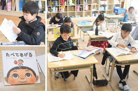 「すきな おはなし なにかな」家や学校で読んだお話の中で、一番好きなお話を決めて、紹介カードを作っています。