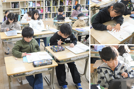 かけ算を使った文章題を解いています。文章をしっかりと読み取ることが大切ですね。