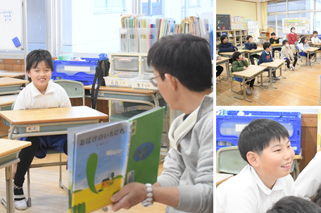 「朝の読み聞かせ」みどり・わかば学級の様子です。