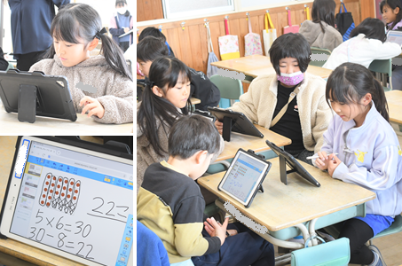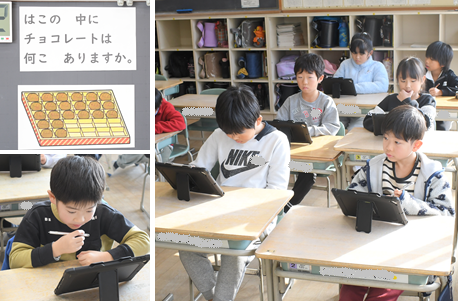 箱の中に入っているチョコレートの数を数えます。数のまとまりに目をつけて、かけ算を上手に使いながら求めています。いろいろな考え方がありますが、答えはみんな同じになりますね。