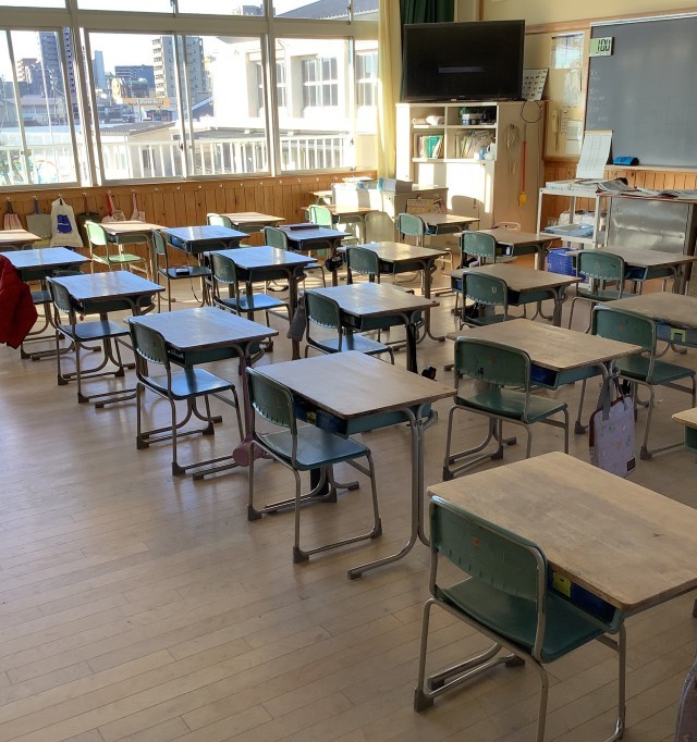 1時間目。校内をまわっていると、椅子と机の整頓の美しい学級がありました。3年生です。