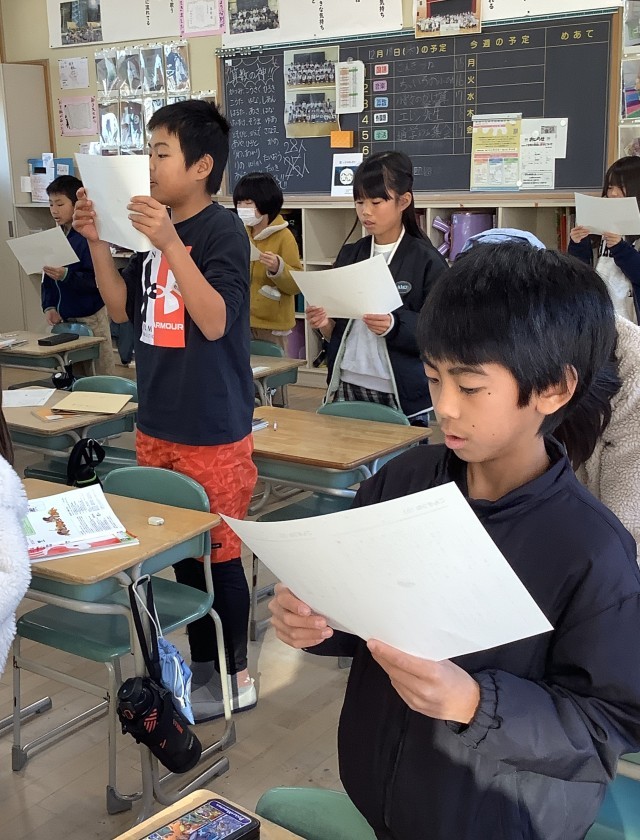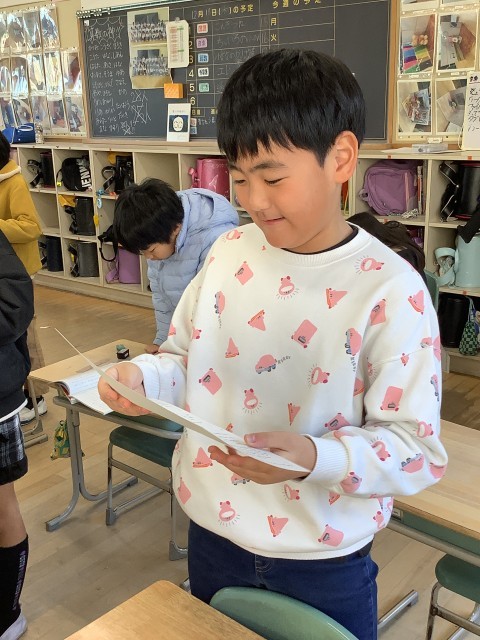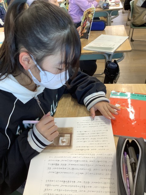 みんなで音読をしている途中、読み方をメモしながら読み進めている子もいました。