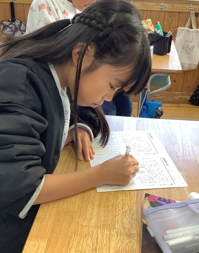 プリントに書かれた文章を一人一人音読した後、各問題に答えていました。まずは問題文等をしっかり読む、という習慣を身につけることは大切です。