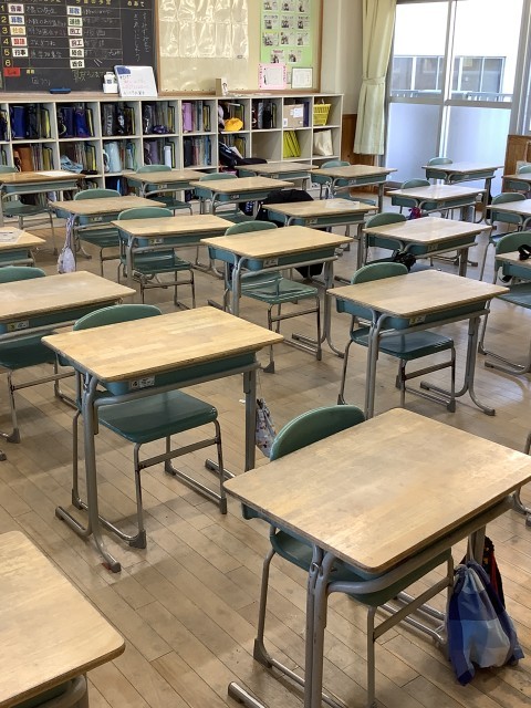 その後、4年生の隣の教室をのぞきました。音楽の授業に出かけていたので誰もいませんでしたが、机、いすの整頓が整っていました。
